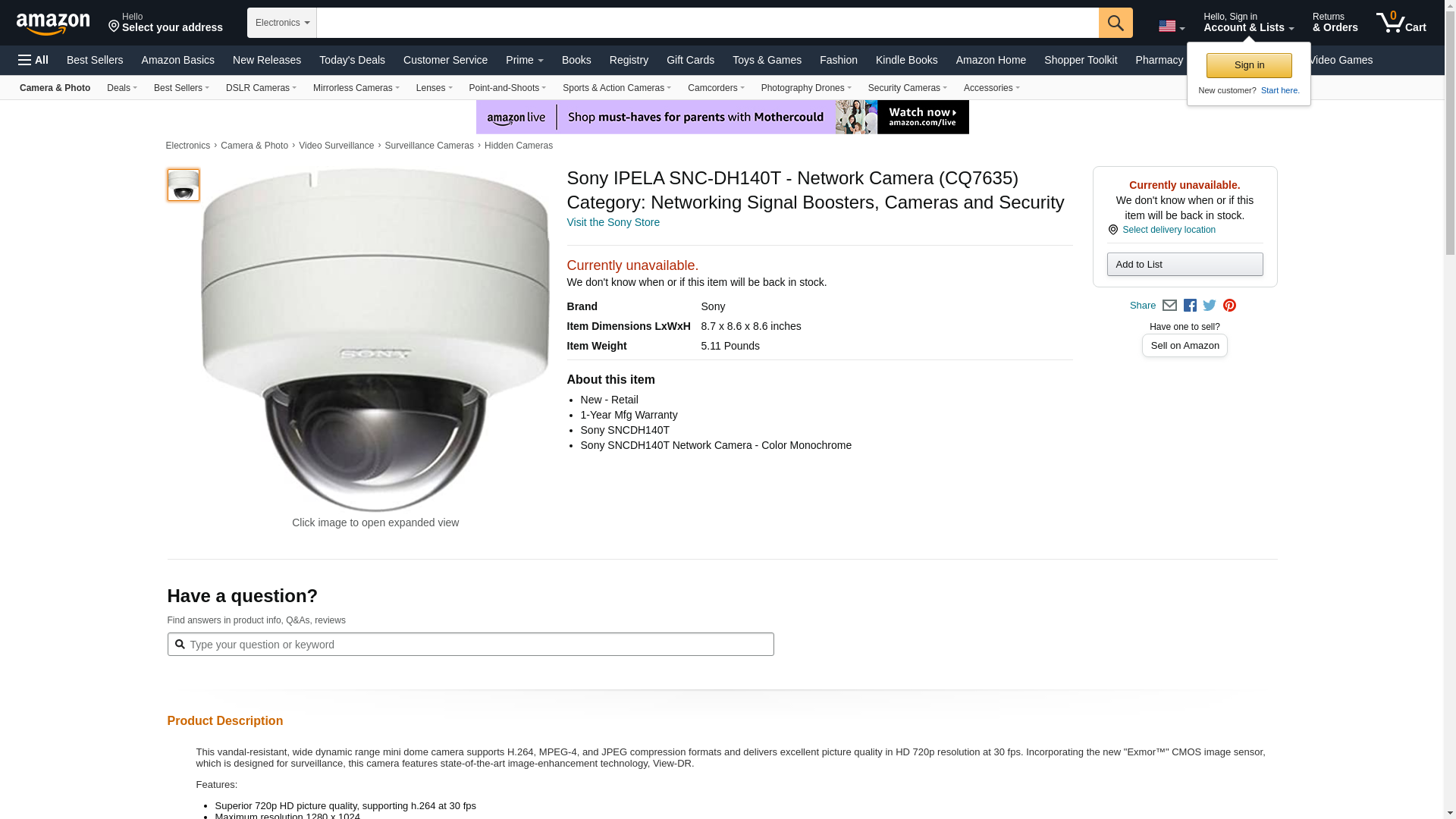 | absupply.net | SONY ELECTRONICS INC CMP. SNC-DH140T | 1 | 1 | 1 @ $2207.75 | |