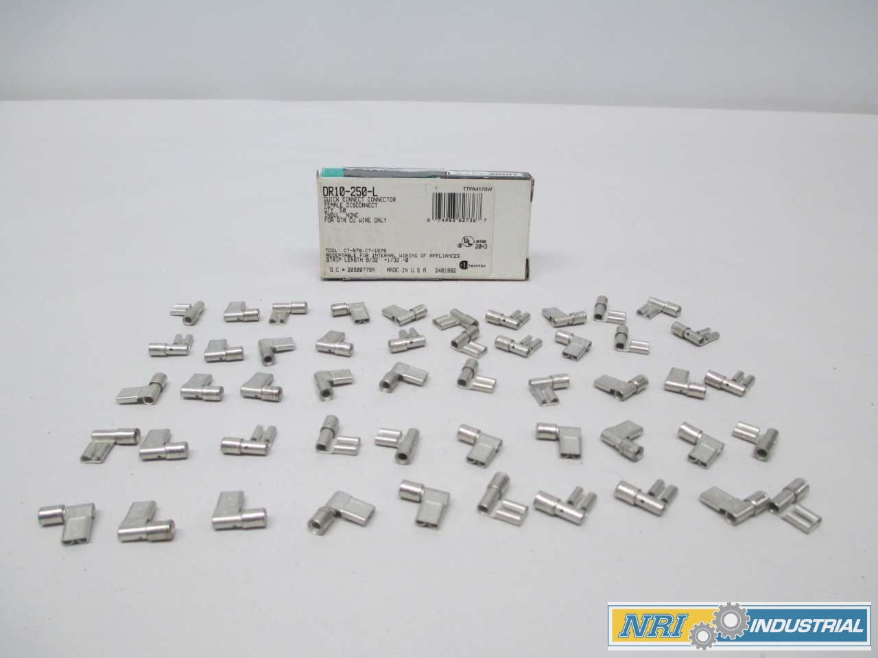 Panduit DR10-250-L Female Disconnect, Right Angle, Non-Insulated, 12 - 10 AWG, .250 by .032-Inch Tab Size, Sleeved Barrel, (50-Pack)
