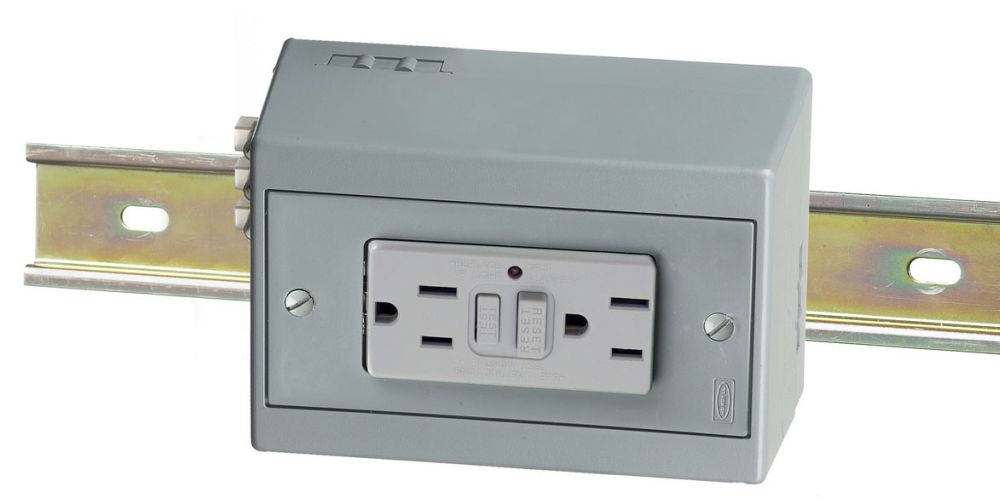 Hubbell DRUBGFI15H DIN Rail Utility Box, 15 amp, 125V, Duplex, GFCI, Horizontal, Gray