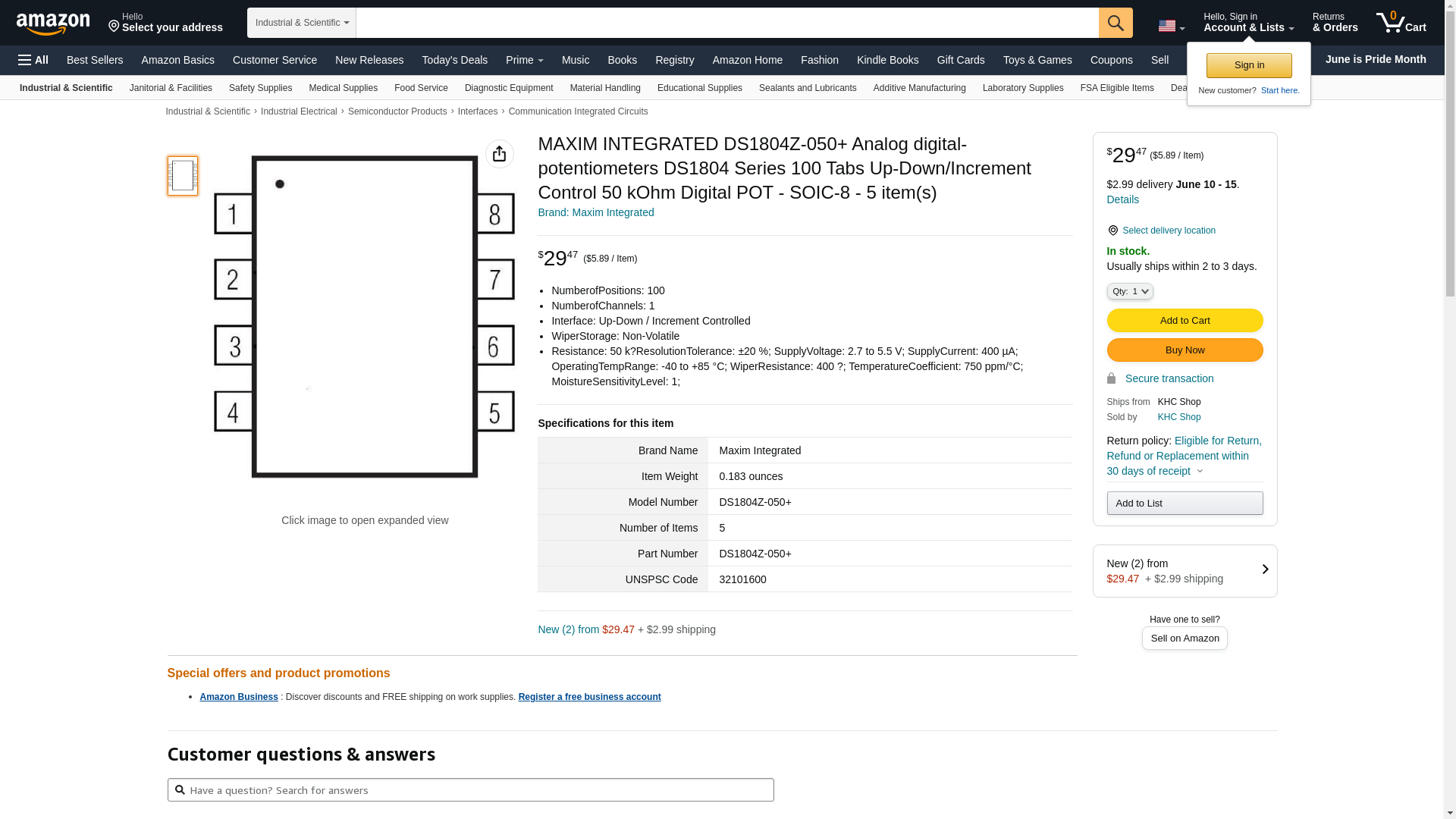 DS1804Z-050+ MAXIM Digital Potentiometer ICs - Jotrin Electronics