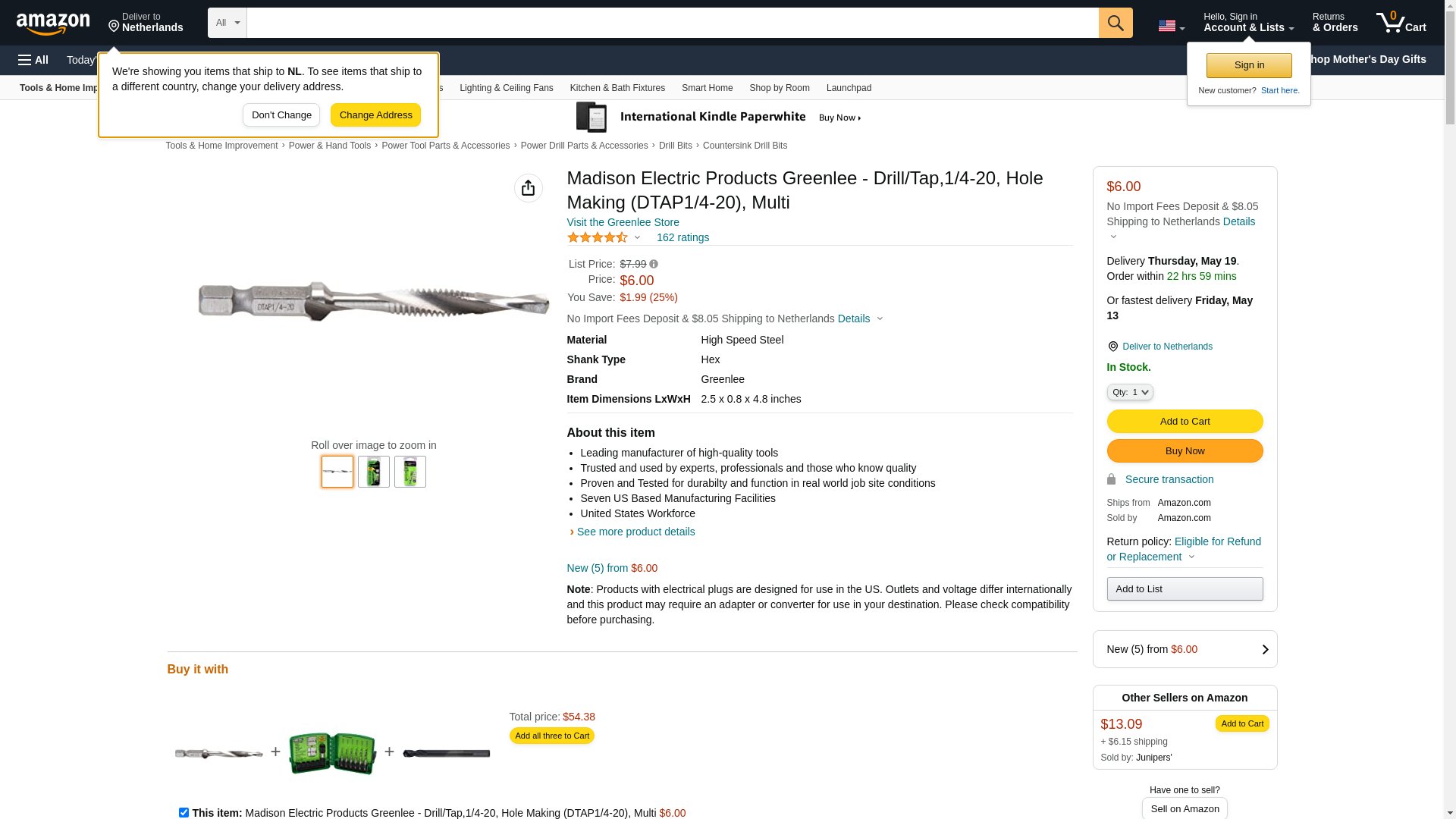 | ToolUp.com | GREENLEE DTAP1/4-20 | 1 | -2 | 1 | 1 @ $9.08 |