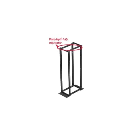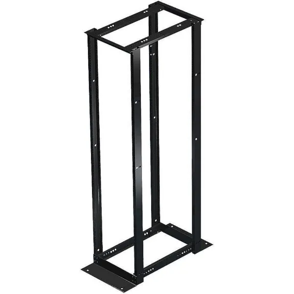 The Hoffman 4-post open frame rack combines the mounting security of a cabinet with the accessibility of a rack. Ideal for communication data center and telecommunications room applications, this adjustable rack supports heavy network equipment. Compatible with 19" rack accessories. Tapped mounting holes. Unassembled, complete assembly instructions included. 83.88" x 20.25" x 7 ft.<br /><br /> Item: Rack<br /> Material: Aluminum<br /> Finish: Black<br /> Sub-Category: Other Accessories<br /> Application: Used In Communication Data Centers and Telecommunication Rooms<br />
