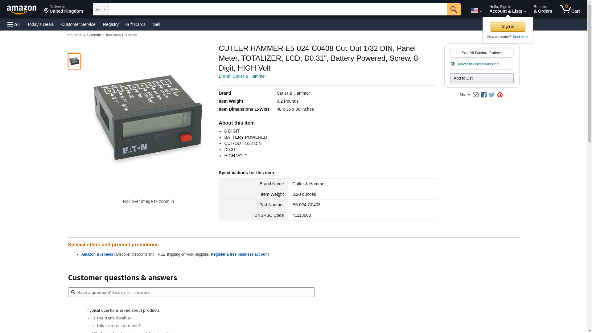 Eaton / Control Automation E5-024-C0408 Totalizer; 8-Digit Lcd Totalizer; Battery Powered High Voltage 24X48mm