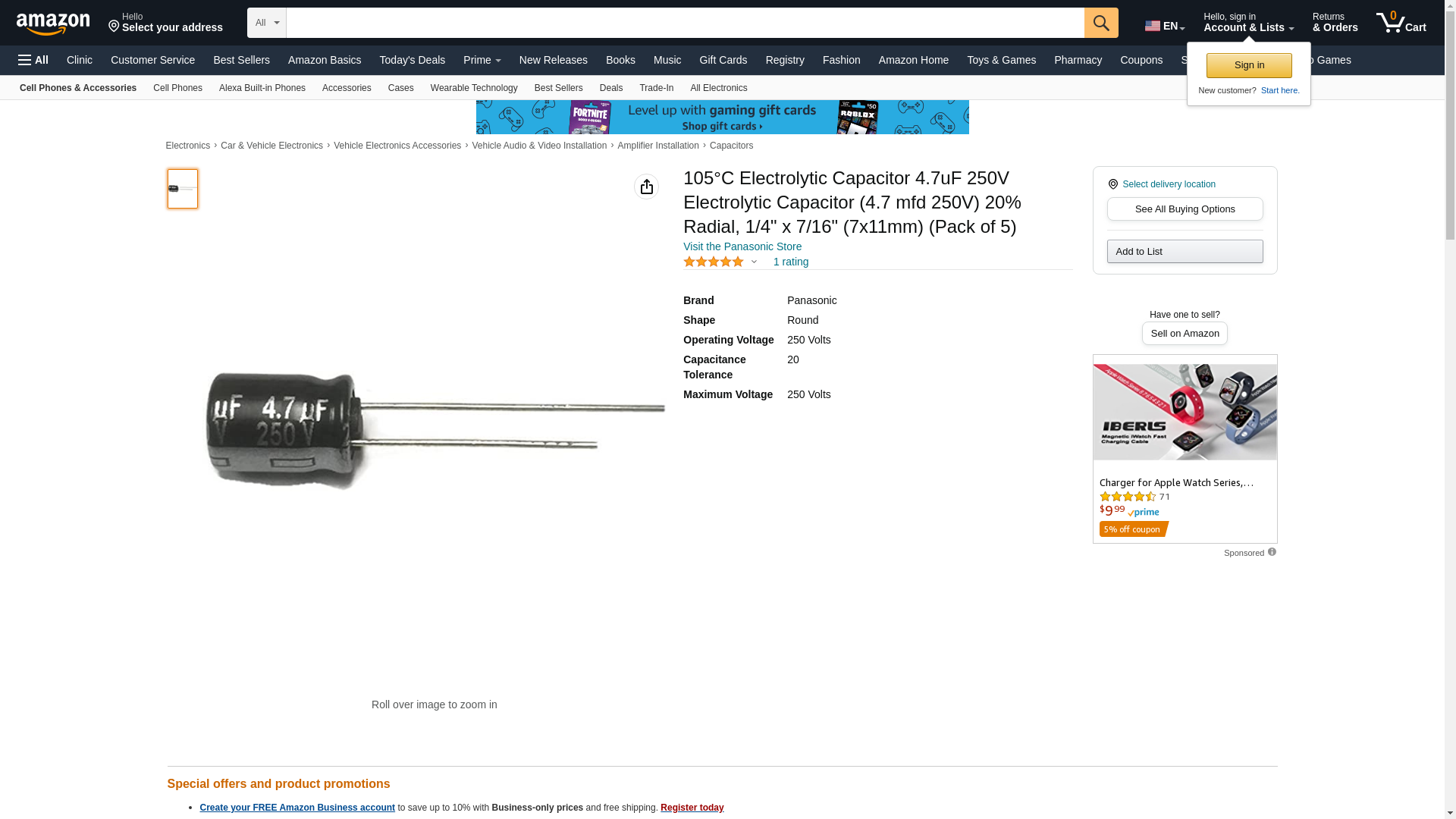 | ECA2EHG4R7 | 10 | 60 | 10 | 10 @ $0.35, 50 @ $0.28, 100 @ $0.26, 200 @ $0.24, 400 @ $0.23 | |