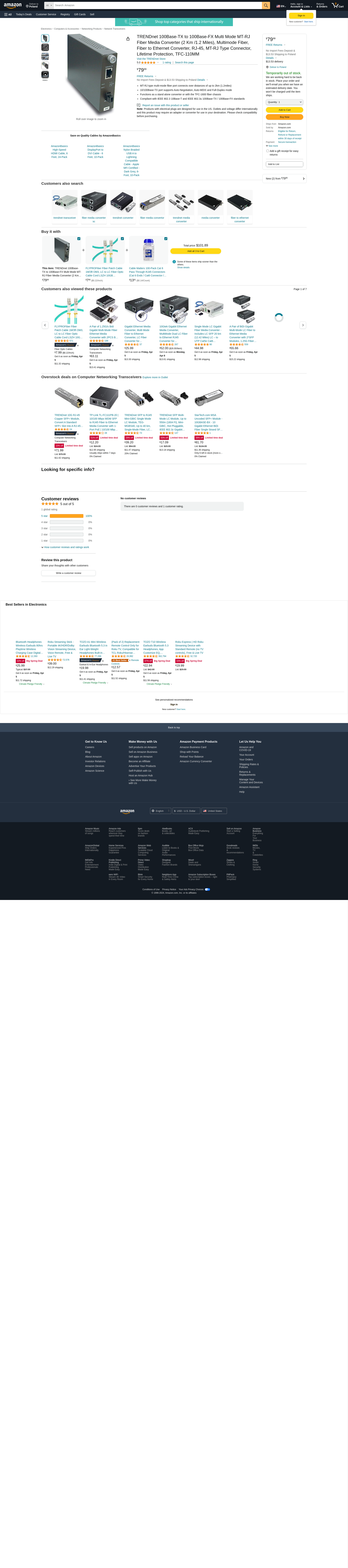 Amazon.com: TRENDnet 100Base-TX to 100Base-FX Multi Mode MT-RJ Fiber Media Converter (2 Km /1.2 Miles), Multimode Fiber, Fiber to Ethernet Converter, RJ-45, MT-RJ Type Connector, Lifetime Protection, TFC-110MM : Electronics