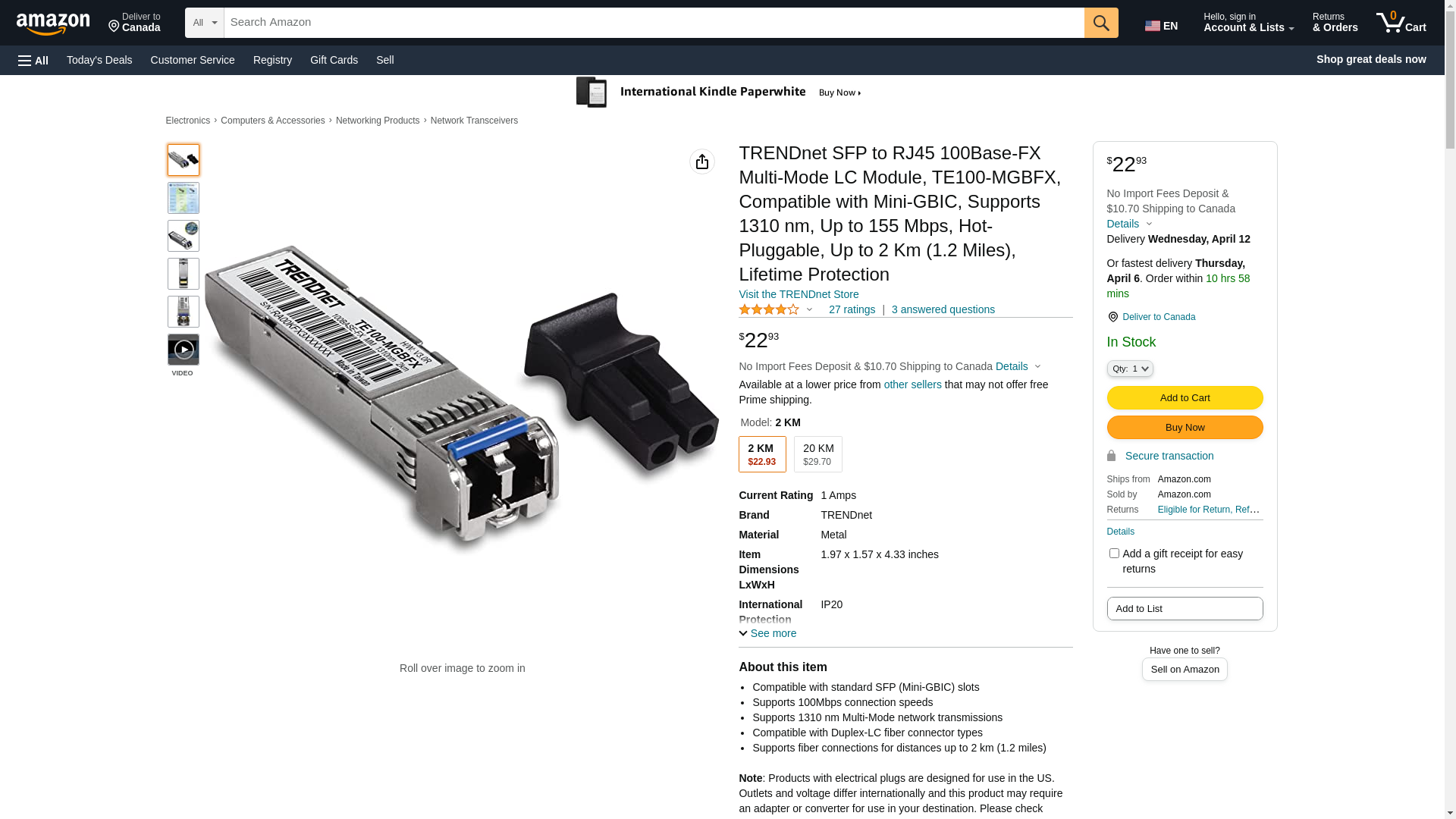 | transceiversdirect.com | TE100-MGBFX | 1 | -2 | 1 | 1 @ $36.21 |