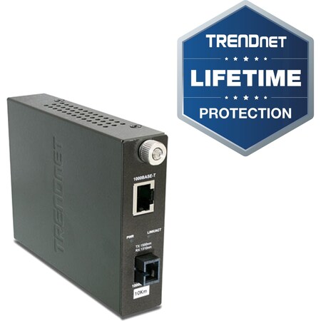 TRENDnet Intelligent 1000Base-T to 1000Base-LX Dual Wavelength Single Mode SC Fiber Media Converter (10km/6.2miles) Fiber to Ethernet Converter, Fiber Port, RJ-45, Lifetime Protection, TFC-1000S10D5