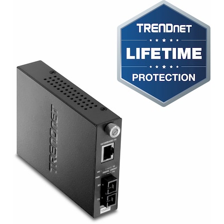 TRENDnet 100Base-TX to 100Base-FX Single Mode SC Fiber Media Converter (100 Km/62.1 Miles), Auto-Negotiation, Auto-MDIX, Full-Duplex Mode, Fiber to Ethernet Converter, Lifetime Protection, TFC-110S100