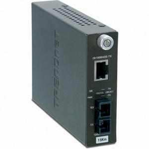 Intelligent 10/100Base-TX to 100Base-FX Single Mode Fiber Converter(15KM). TFC-110Sxxi series Fiber Converter transforms 10/100Base-TX UTP/STP media to 100Base-FX media and vice versa. The 10/100Base-TX port auto-sense 10 or 100Mbps connection speeds, auto-negotiates half-/full-duplex mode, and auto-MDIX media type. This converter gives your switch the ability to interface with fiber connection over a distance up to 15 Km.