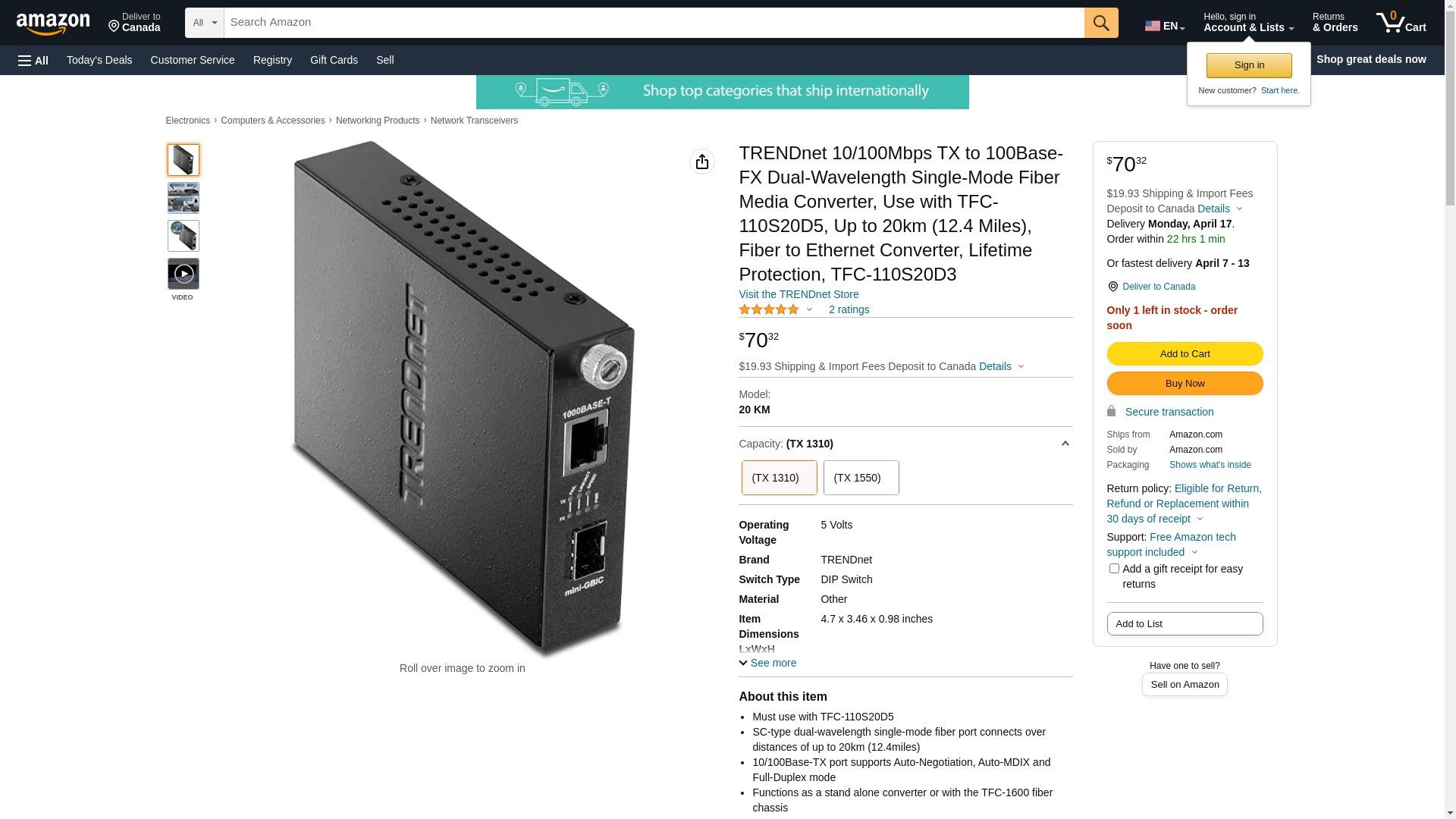 ![]() transceiversdirect.com | TFC-110S20D3 | 1 | -2 | 1 | 1 @ $79.44 |