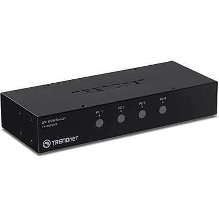 TRENDnet 4-Port DVI KVM Switch with Audio, Manage Four PC's, Hot-Keys, USB 2.0, USB Switch, Metal Housing, Use with a DVID-D Monitor, TK-422DVK