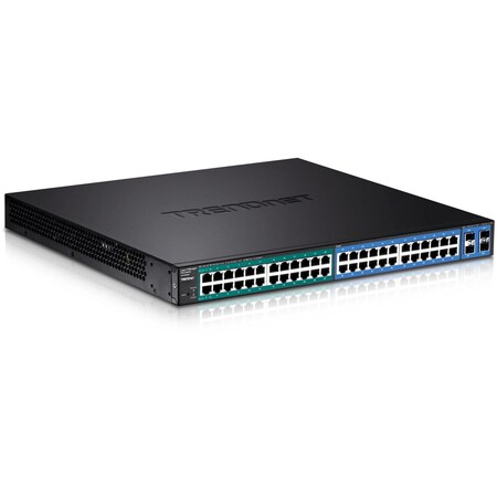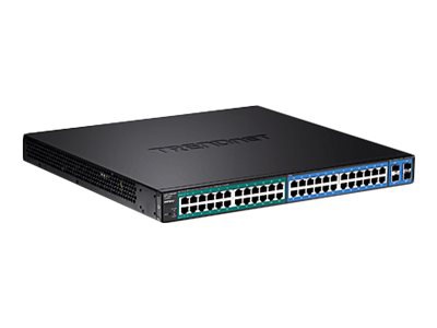 TRENDnet 48-Port Gigabit PoE+ Managed Layer 2 Switch with 4 Shared SFP Slots - 48 Ports - Manageable - 2 Layer Supported - Modular - Twisted Pair, Optical Fiber - 1U High - Rack-mountable - Lifetime L