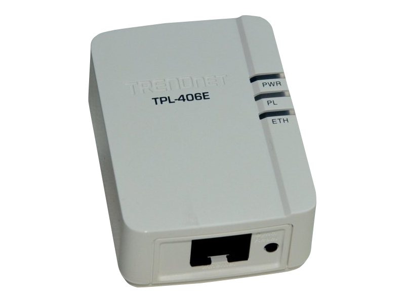 The 500Mbps Compact Powerline AV Adapter Kit, model TPL-406E2K, uses any electrical outlet to create a secure high speed network. Connect the first adapter to your network and plug the second adapter into any outlet on your electrical system for instant high speed network access. The compact form factor saves space around crowded electrical outlets. This adapter automatically connects to other TRENDnet Powerline AV adapters with no installation required-TRENDnet recommends pressing the #39; #39;Sync #39; #39; button to automatically change default encryption keys. Warning: Cancer and Reproductive Harm - www.P65Warnings.ca.gov.