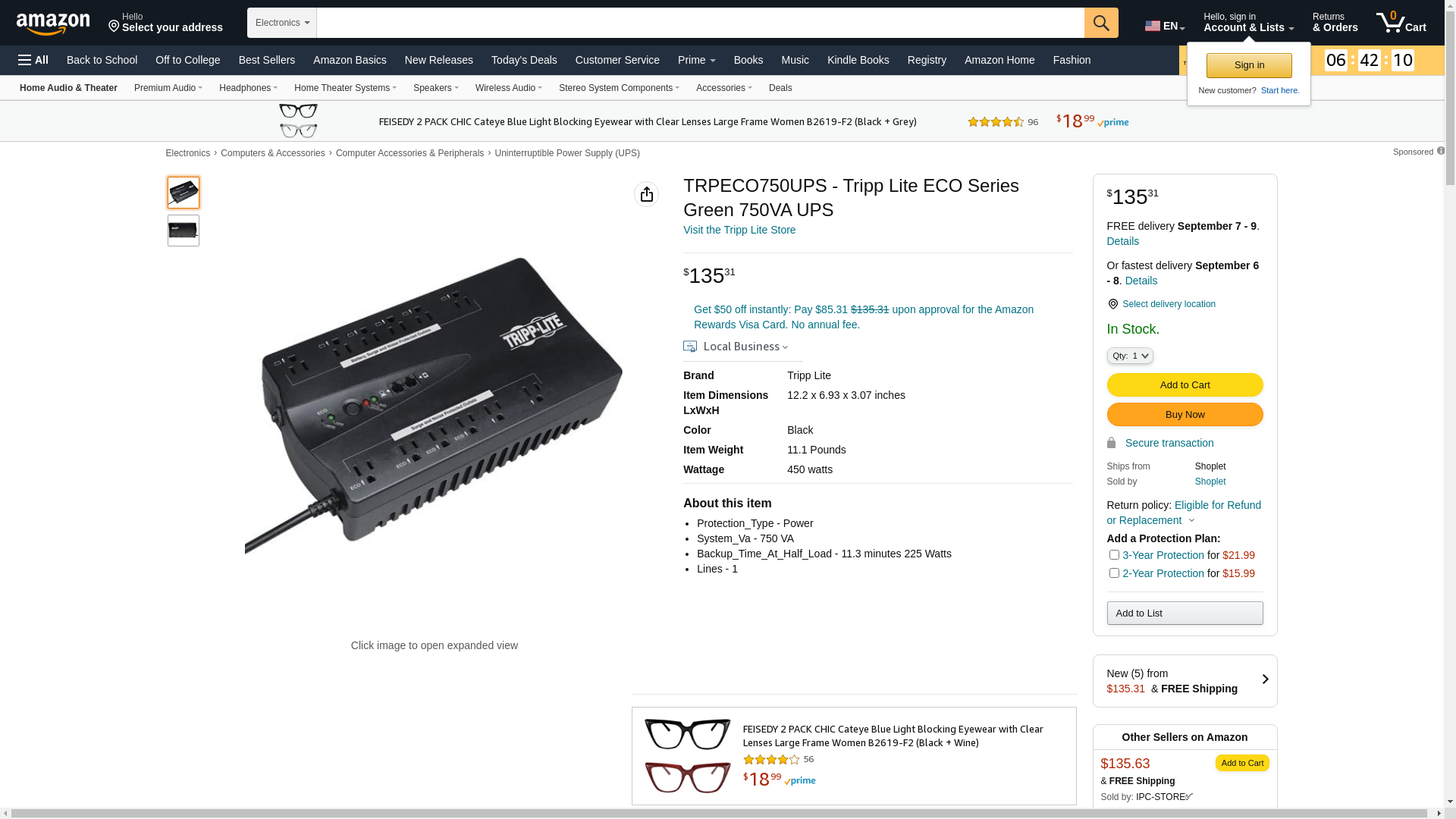 ![]() homeessentialsdirect.com | ECO750UPS | 1 | 1 | 1 @ $146.09 | |