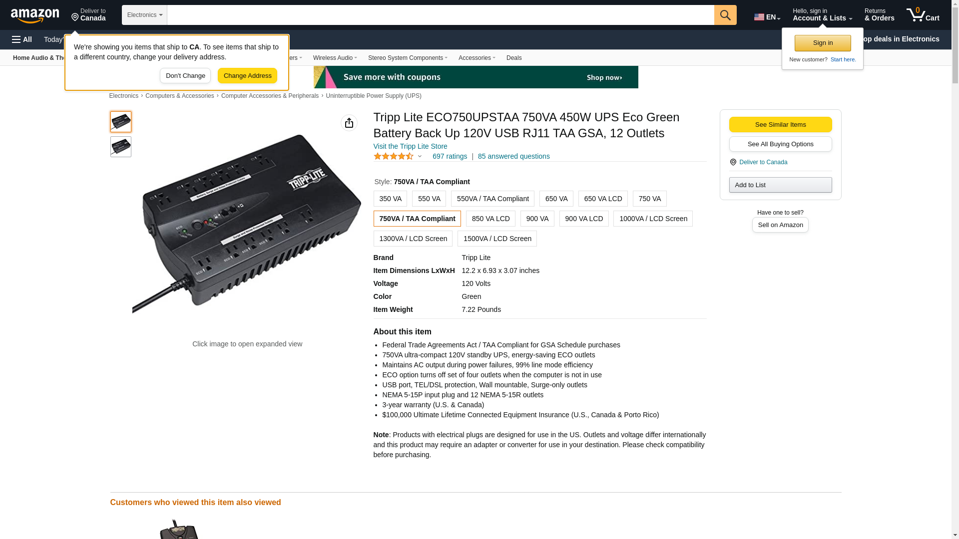 | Feature | Tripp Lite ECO750UPSTAA (TAA) Compliant 750VA Ultra-high efficiency ... |