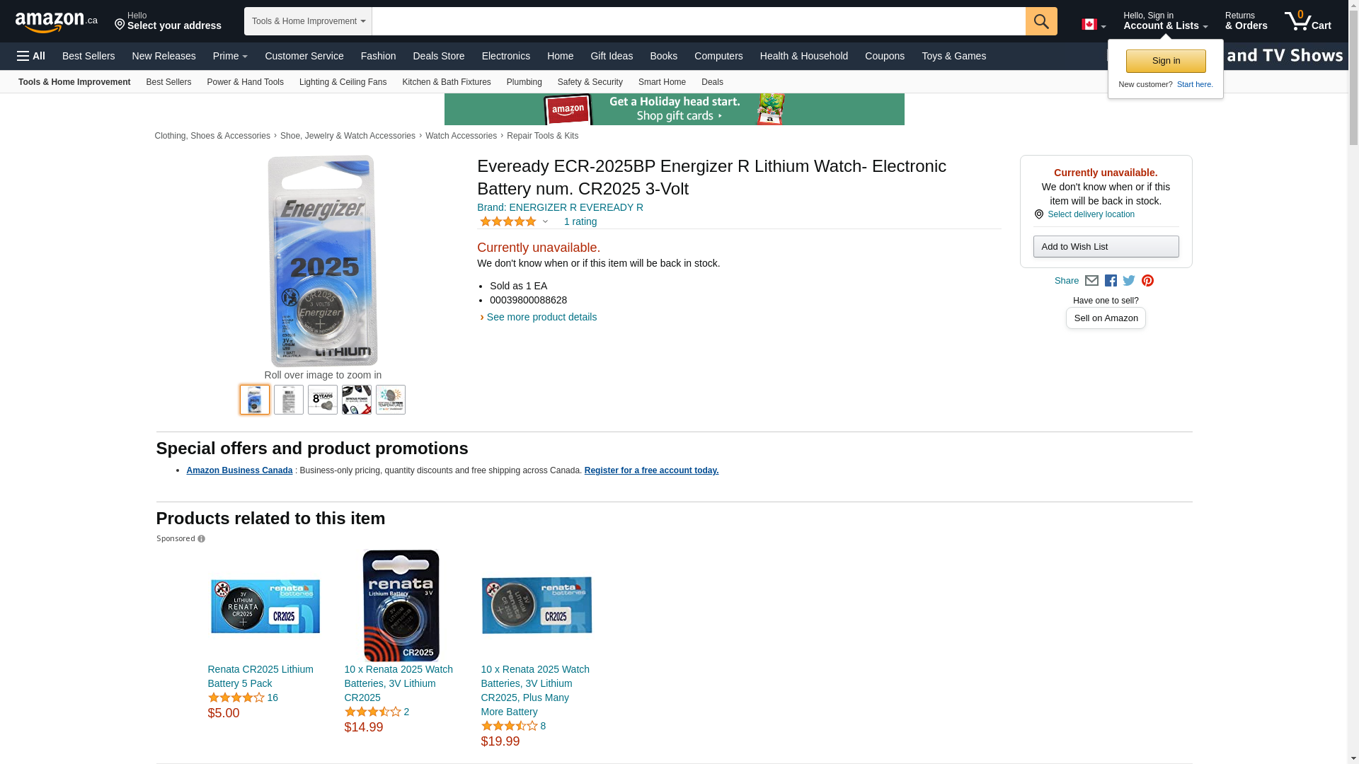 | absupply.net | ENERGIZER CMP. ECR2025BP | 1 | 1 | 1 @ $2.71 | |