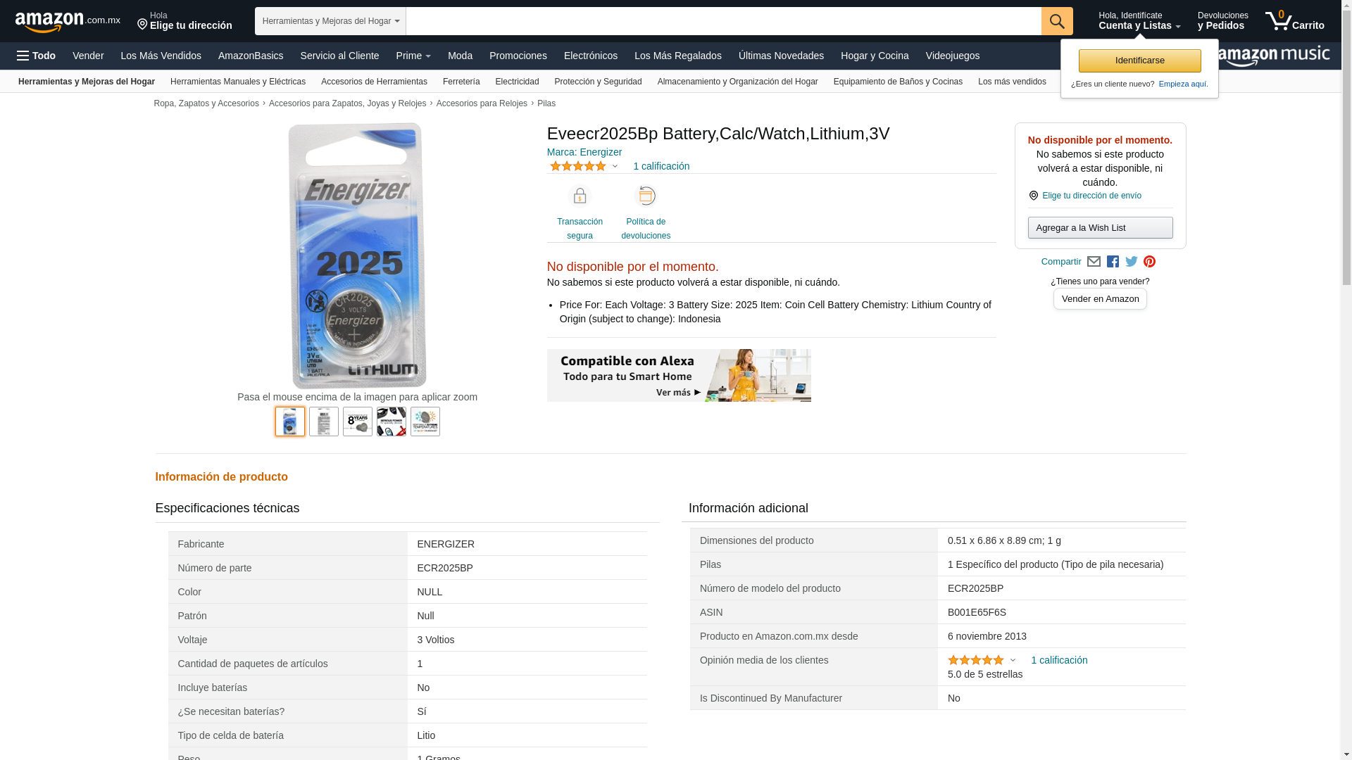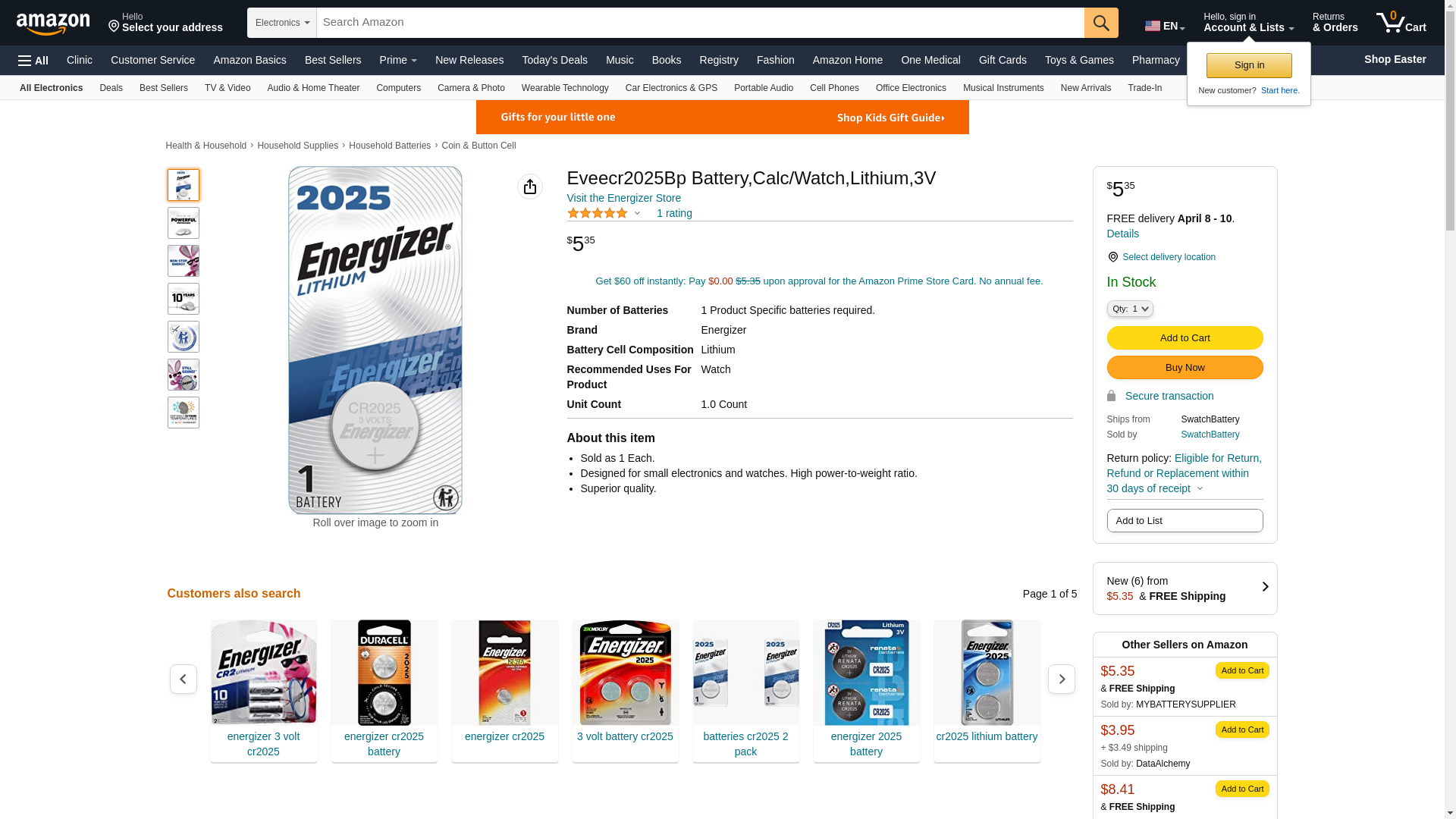 | BatteryJunction.com | ENERGIZER-ECR2025BP | 1 | 1 | ||
