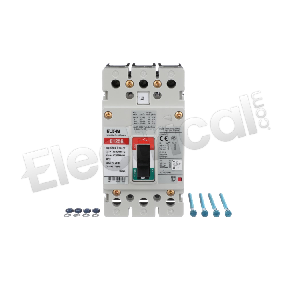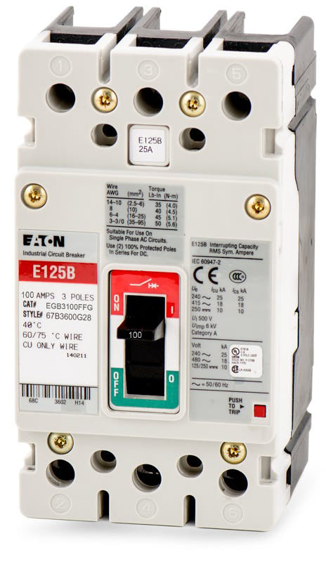 Eaton EGB3100FFG Breaker, Molded Case, Type EGB, 3P, 100A, 440VAC, 600Y/347 VAC