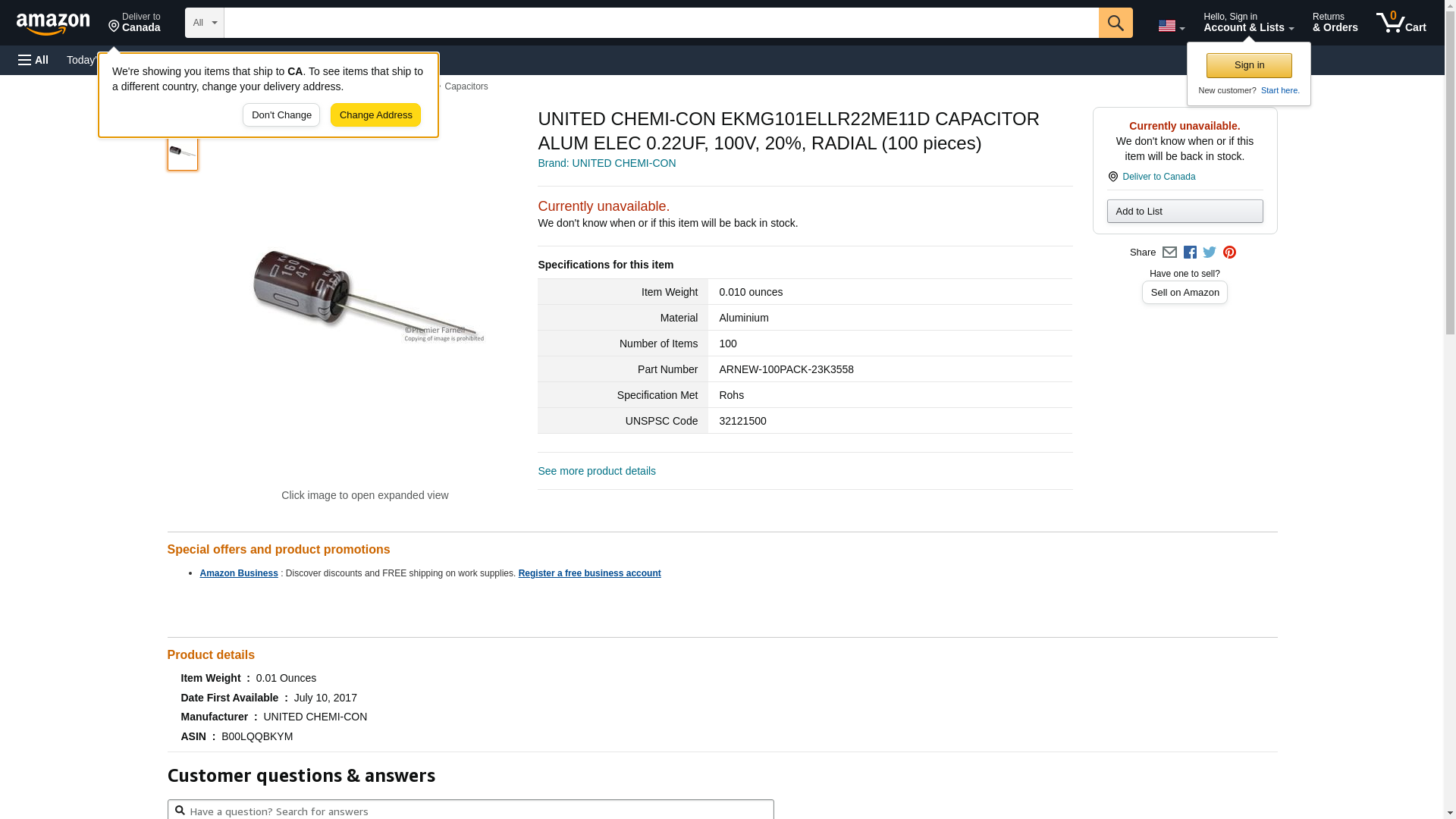 UNITED CHEMI-CON . EKMG101ELLR22ME11D