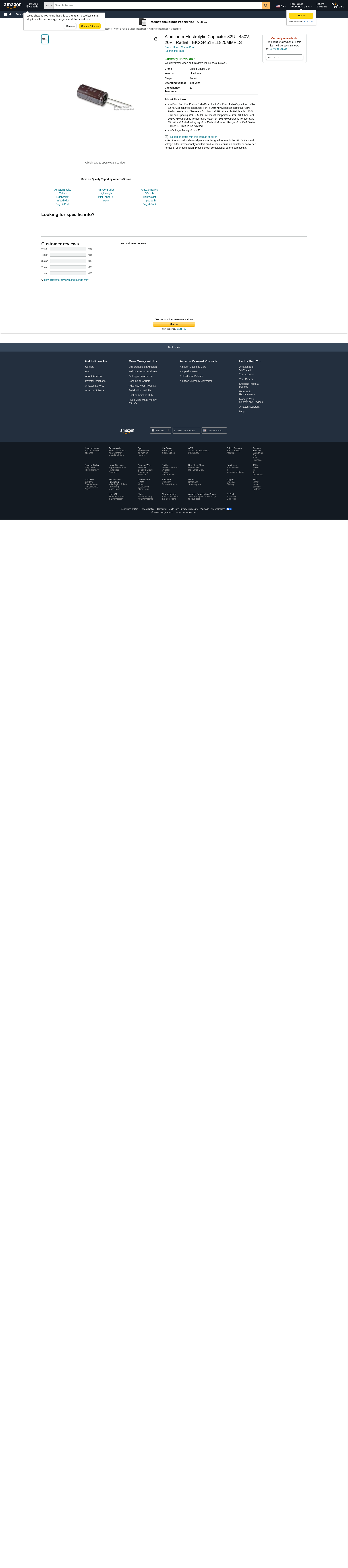United Chemi-Con Aluminum Electrolytic Capacitor 82Uf, 450V, 20%, Radial - EKXG451ELL820MMP1S