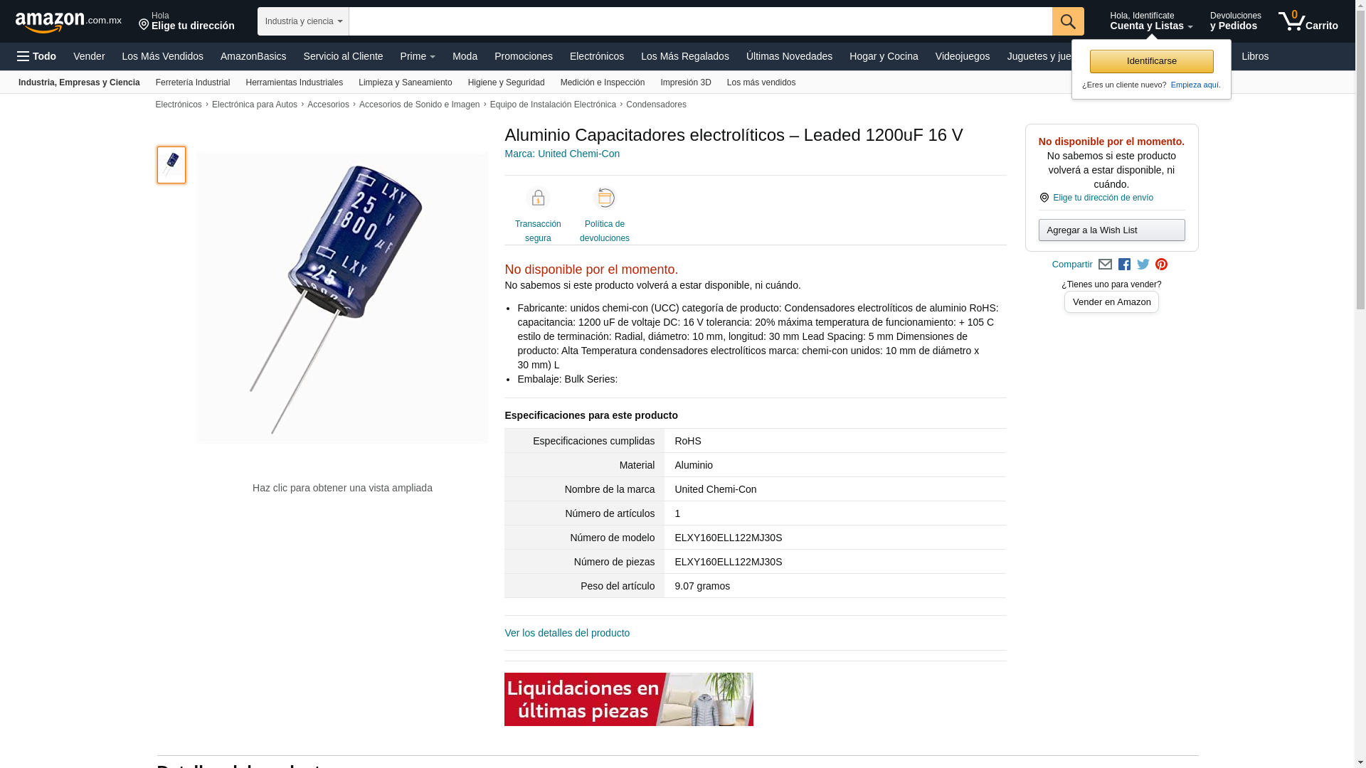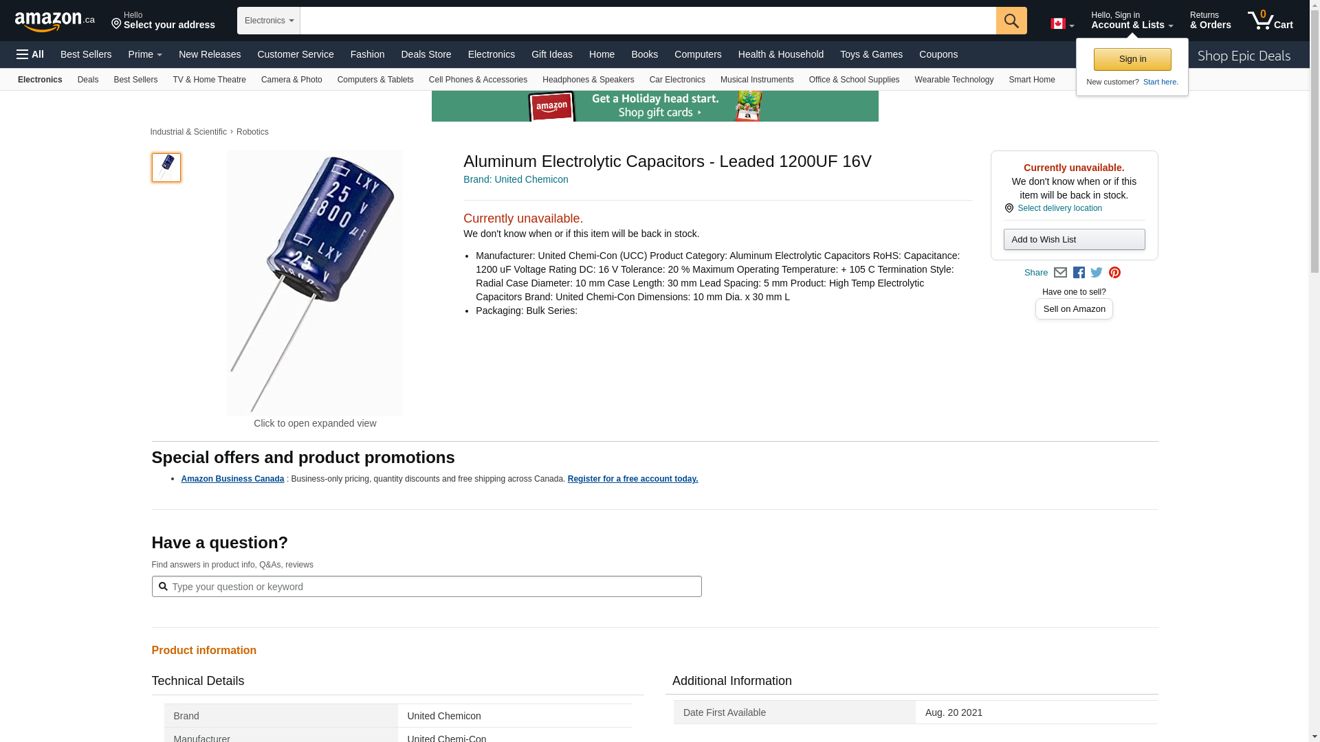 ![]() Onlinecomponents.com | ELXY160ELL122MJ30S | 1 | 1676 | 1 | 1 @ $0.31, 25 @ $0.29, 100 @ $0.28, 500 @ $0.27, 1000 @ $0.25, 2000 @ $0.23, 4000 @ $0.21 |