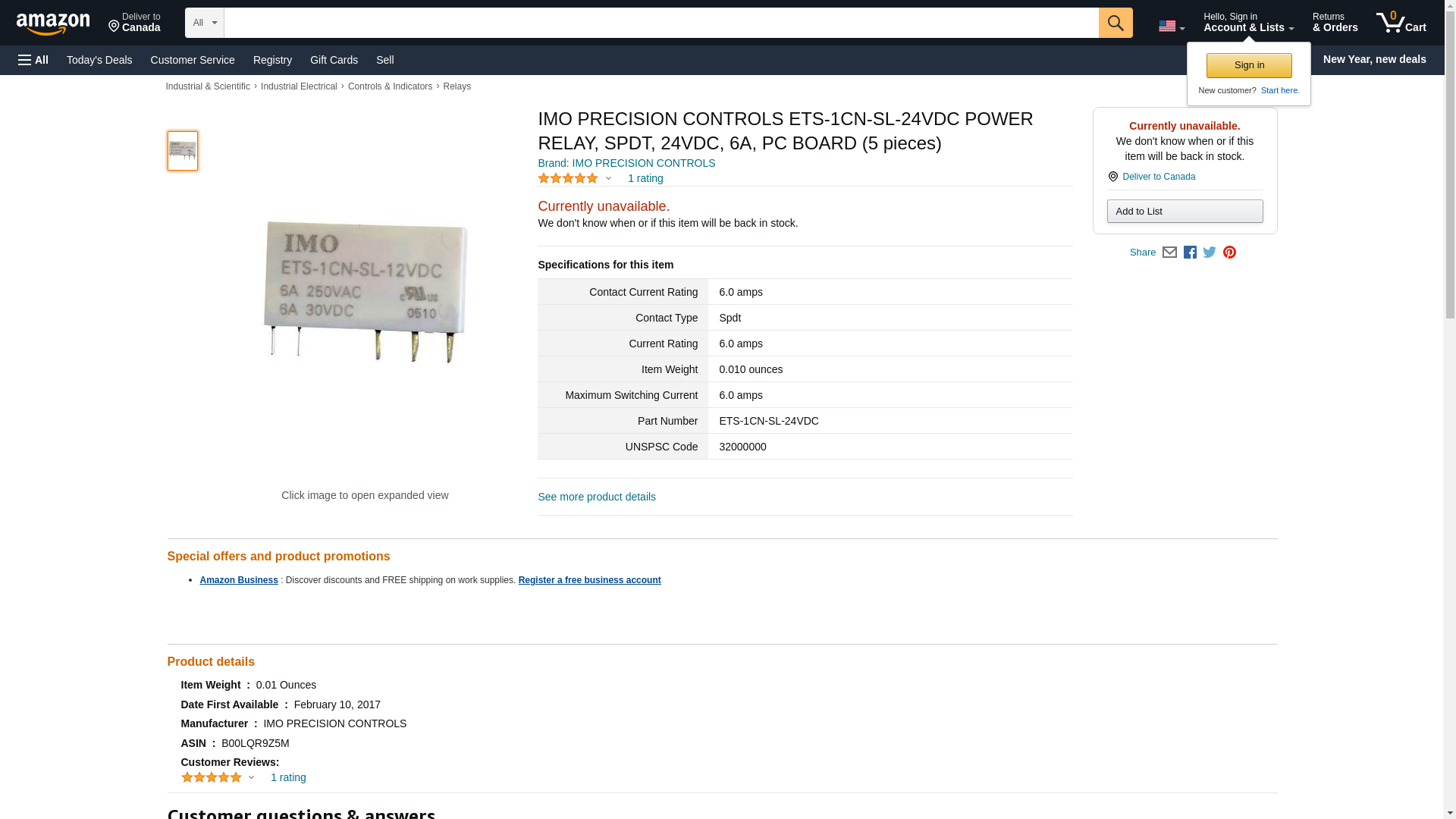 IMO PRECISION CONTROLS ETS-1CN-SL-24VDC POWER RELAY, SPDT, 24VDC, 6A, PC BOARD (100 pieces)