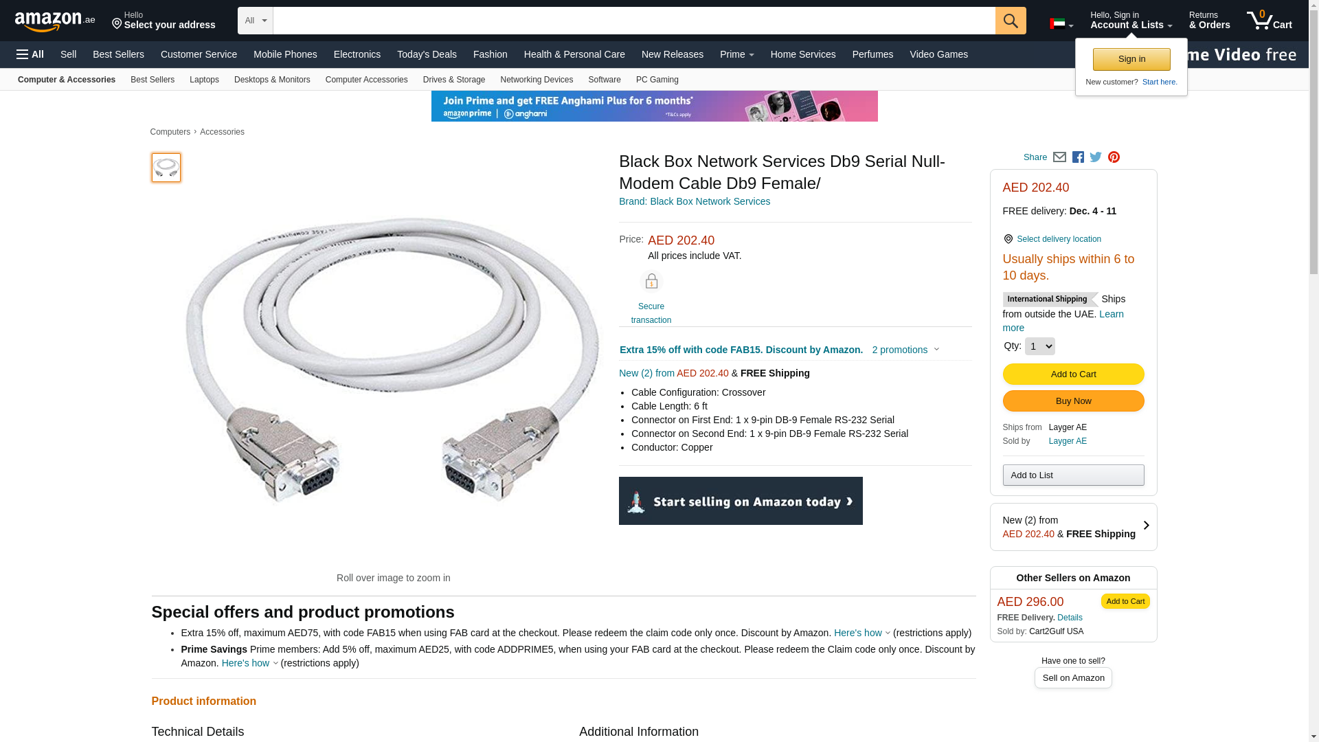 - Connector on First End: 1 x 9-pin DB-9 Female RS-232 Serial