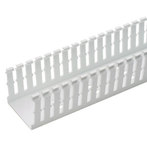 PANDUCT Wiring Duct routes and contains wires to eliminate tying and mounting of wire bundles for reduced installation cost. Wiring duct consists of two parts: a U-shaped channel and a removable cover (sold separately) to enclose the wires and deliver an aesthetically pleasing wire management solution.<br /><br /> Item: Wiring Duct<br /> Wall Type: Narrow Slot<br /> Color: White<br /> Material: Lead Free PVC<br /> Length: 6 ft.<br /> Width: 1.75"<br /> Height: 3.12"<br /> Slot-to-Slot Centerline: 0.50"<br /> Slot Width: 0.20"<br /> Slot Height: 2.12"<br /> Mounting Style: Screw Mount<br /> Standards: NFPA-79-2007, UL94 V-0
