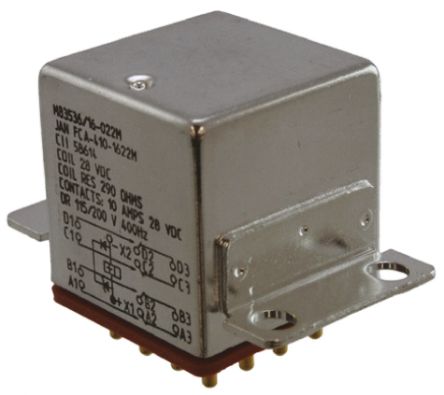 Te Connectivity FCA-410-1622M Relay, Mid Range, 28Vdc, 10A, Bottom Mnt, Skt Pins, W/ Diode, M83536/16-022M