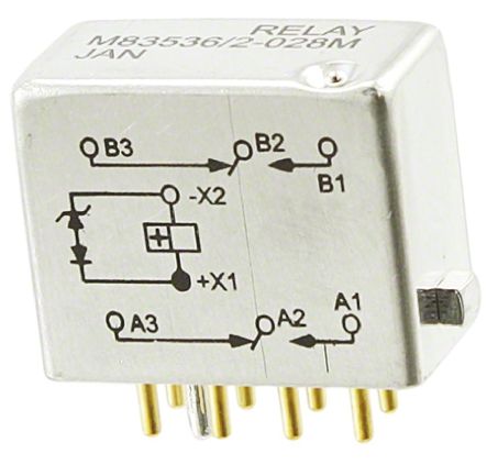 Electromechanical Relay 28VDC 500Ohm 5A DPDT (23.37x10.41x16.26)mm Track Mount Military Relay