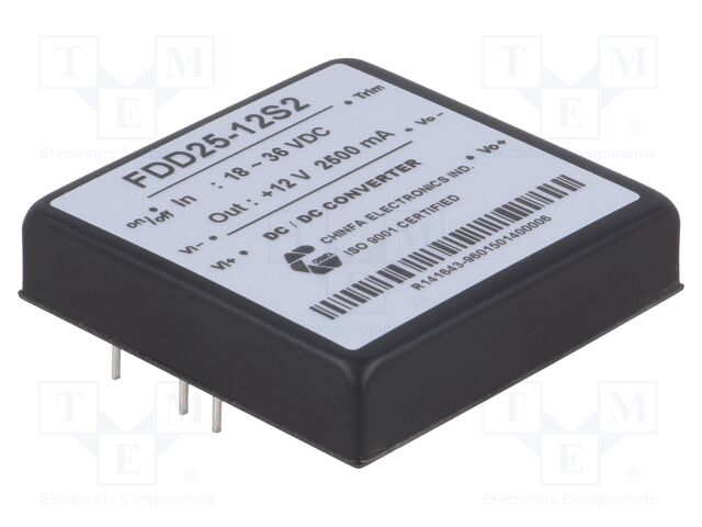 CHINFA ELECTRONICS FDD25-12S2 | Converter: DC/DC; 30W; Uin: 18?36V; Uout: 12VDC; Iout: 2.5A