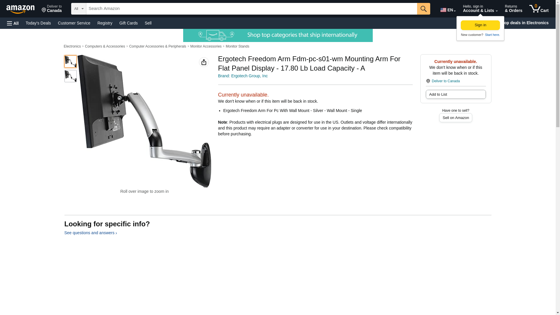 Ergotech Freedom Arm for PC with Wall Mount - Silver - Wall Mount - Single - Ergotech Freedom Arm for PC with Wall Mount - Ergotech Freedom Arm for PC with Wall Mount - Silver - Wall Mount - Single - FREEDOM ARM WALL MOUNT FOR PC SINGLE - Marketing Info: - The Freedom Arm Wall Mount is an Articulating LCD Monitor Arm that easily mounts one monitor to your wall. It comes with everything you need to get the arm installed, including the VESA plate (a 39 dollars value). Holding 1 monitor from 8.4lbs to 17.8lbs, the Freedom Arm Wall Mount for PC offers 120degree dynamic one-touch height adjustment and a full extension range of 23.4in. - Item-Type: - Wall Mount. . Item-Part-No#: FDM-PC-S01-WM - New - Ergotech Freedom Arm for PC with Wall Mount - Silver - Wall Mount - Single