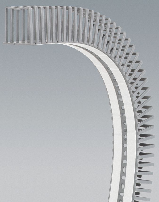 PANDUIT Flexible Duct is a one piece slotted sidewall, open finger design wiring duct intended to route and protect wires installed in control panel applications that require flexibility. This duct has offset fingers which extend from the sides and come together at the top of the duct to completely enclose any wire or cable. Due to its flexibility, the duct is useful in routing wires from control panel back planes and sidewalls, over hinges, to components mounted on control panel doors, and can be used in applications requiring flexibility where conventional wiring duct cannot.<br /><br /> Item: Wiring Duct<br /> Wall Type: Slotted Wall<br /> Color: Gray<br /> Material: Polypropylene<br /> Length: 1.64 ft.<br /> Width: 2.00"<br /> Height: 2.00"<br /> Slot-to-Slot Centerline: 0.25"<br /> Slot Width: 0.20"<br /> Slot Height: 1.63"<br /> Mounting Style: Screw Mount<br /> Standards: UL94 V-2, CSA, UL