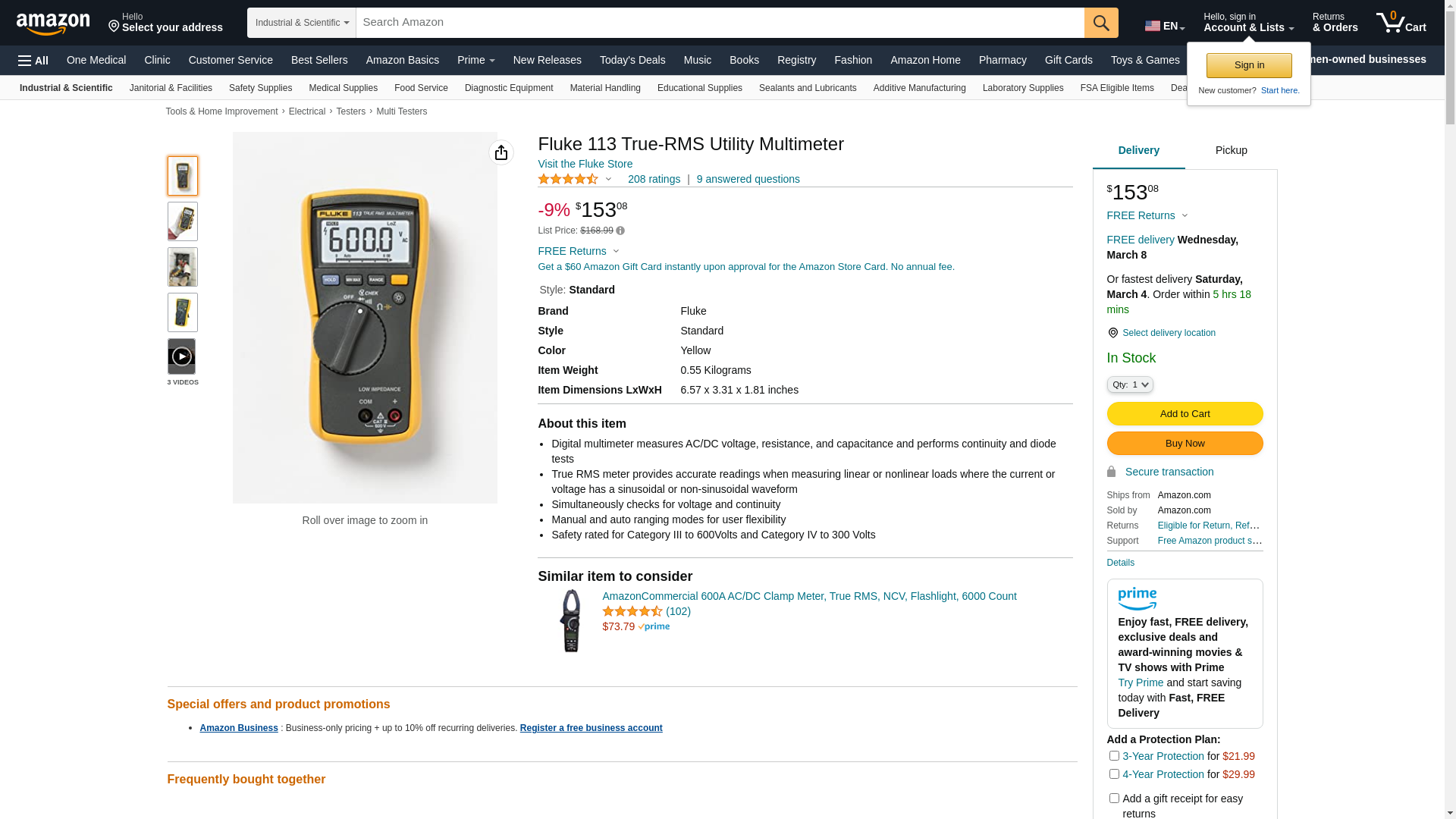 ![]() Walker Industrial | FLUKE-113 | 1 | 3 to 5 Business Days | 1 | 1 @ $132.34 |