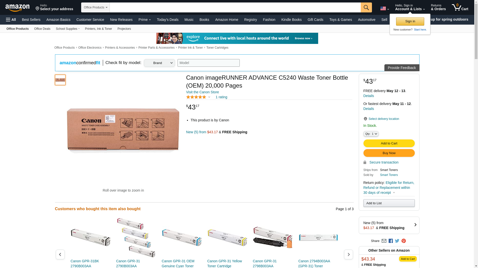 Canon imageRUNNER ADVANCE C5240 Waste Toner Bottle (OEM) has an estimated page yield 20,000 pages. The package contains Genuine Canon Waste Toner Case Assembly. It is compatible with Canon imageRUNNER ADVANCE C5030, C5035, C5045, C5051, C5235, C5235A, C5240, C5240A, C5250, C5255. This Canon waste toner bottle delivers professional high-quality documents, with impressive speed. Manufacturer part number: FM4-8400-010.