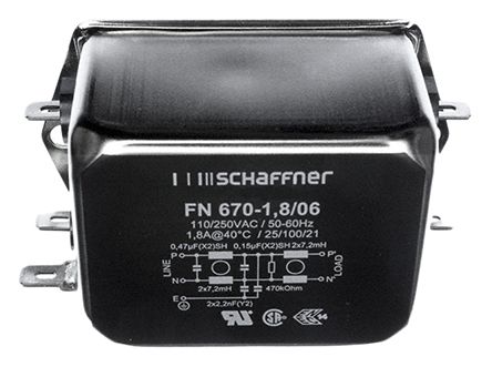 | Feature | Manufacturer: Schaffner Product Category: AC Power Entry Modules RoHS: Filtered: Yes Filter Type: Power Entry Product: Inlets Current Rating: 1 A Voltage Rating: 250 VAC Mounting Style: Flange Termination Style: Faston Operating Temperature Range: - 25 C to + 85 C Connector Type: Power Entry Modules Flammability Rating: UL 94 V-2 Fused: Yes Switch Function: Switched |