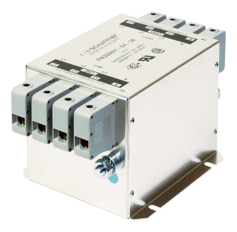Schaffner FN3280H-16-29 3-PHASE 16 A CHASSIS MOUNT INPUT FILTER, SAFETY TERMINAL BLOCK, HIGH VOLTAGE