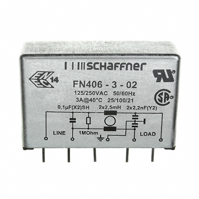 Schaffner FN406-3-02 Filter, PCB Mount, 3A, 250 VAC, UL Recognized, CSA Certified