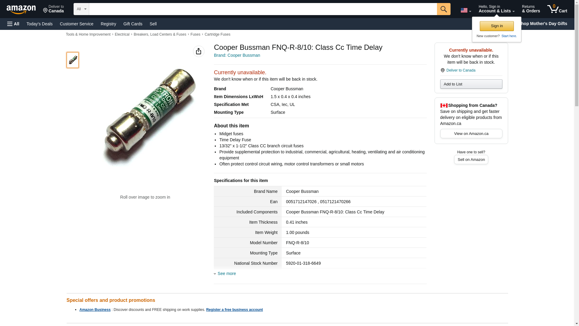 | Fuses Unlimited | FNQ-R-8/10 | 1 | 24 | 1 | |