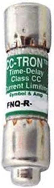 Featuring nickel-plated brass endcaps, this fuse provides control circuit transformer protection. The current limitation protects downstream components against the damaging thermal and magnetic effects of short-circuit currents.<br /><br /> Item: Fuse<br /> Fuse Amps: 8/10A<br /> Indicating / Nonindicating: Nonindicating<br /> Series: FNQ-R<br /> Fuse Voltage Rating: 600VAC<br /> Fuse Speed: Time Delay<br /> Class: CC<br /> Element: Dual<br /> Body Material: Melamine<br /> Rejection / Nonrejection: Rejection<br /> Body Style: Cylindrical<br /> Fuse Interrupt Rating: 200kA at 600VAC<br /> Length: 1-1/2"<br /> Diameter: 13/32"<br /> Functionally Equal To: Mersen/Ferraz Shawmut ATQR, Littelfuse KLDR<br /> Standards: CE/UL-248-4 Guide JDDZ/CSA Class 1422-01<br /> Green Environmental Attribute: RoHS Compliant<br />
