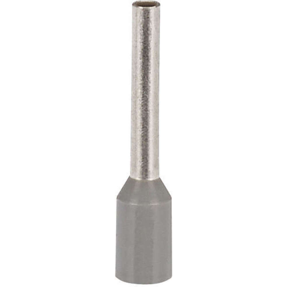 Designed with seamless barrel to contain loose wire strands for superior terminations. This ferrule eases insertion of wire into terminal block, and is suitable for limited-space panel applications.<br /><br /> Item: Ferrule<br /> Wire Range: 18 AWG<br /> Insulation Type: Polypropylene<br /> Insulation Color: Gray<br /> Insertion Length: 17/32"<br /> Overall Length: 0.63"<br /> Max. Temp.: 221 Degrees F<br /> Connection Material: Tinned<br /> Features: Funnel Entry, Seamless Barrel, Suitable for Limited Space Applications, Type FSD<br /> Standards: DIN, UL