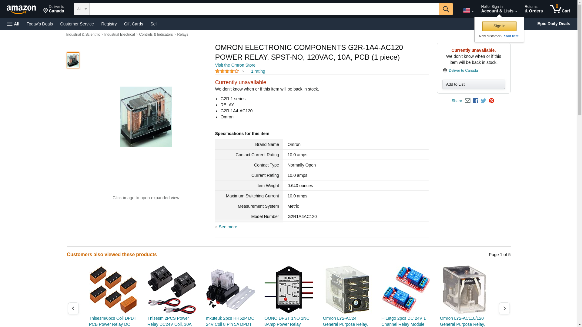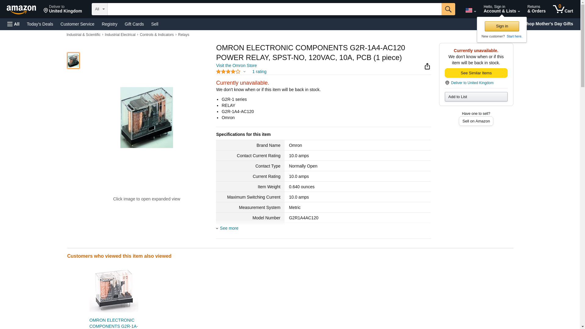| Waldom | OMRON ELECTRONICS G2R-1A4-AC120 | 1 | 1 | ||