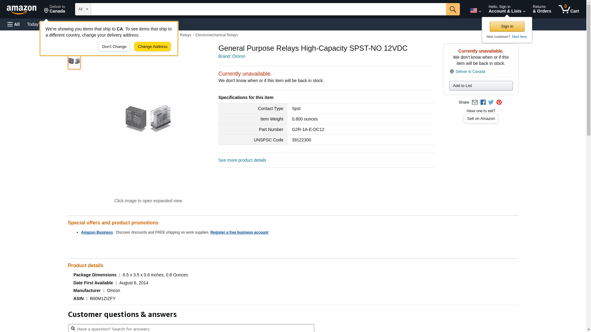 | Waldom | OMRON ELECTRONICS G2R-1A-E-DC12 | 1 | 1 | ||