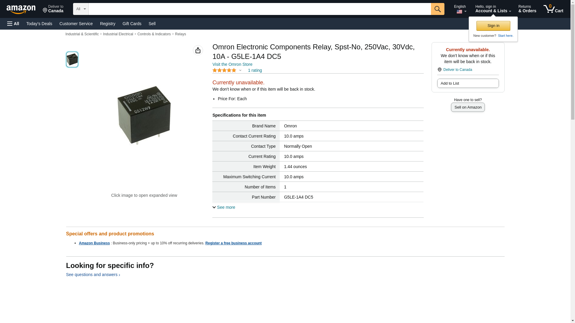 | G5LE-1A4-DC5 | 30 | 66 | 1 | 30 @ $0.95, 1000 @ $0.79, 10000 @ $0.75 | |