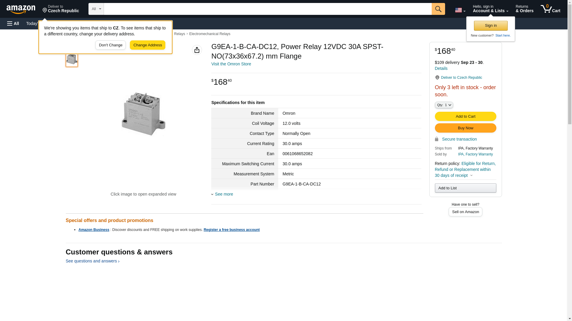 | Waldom | OMRON ELECTRONICS G9EA-1-B-CA-DC12 | 1 | 1 | ||