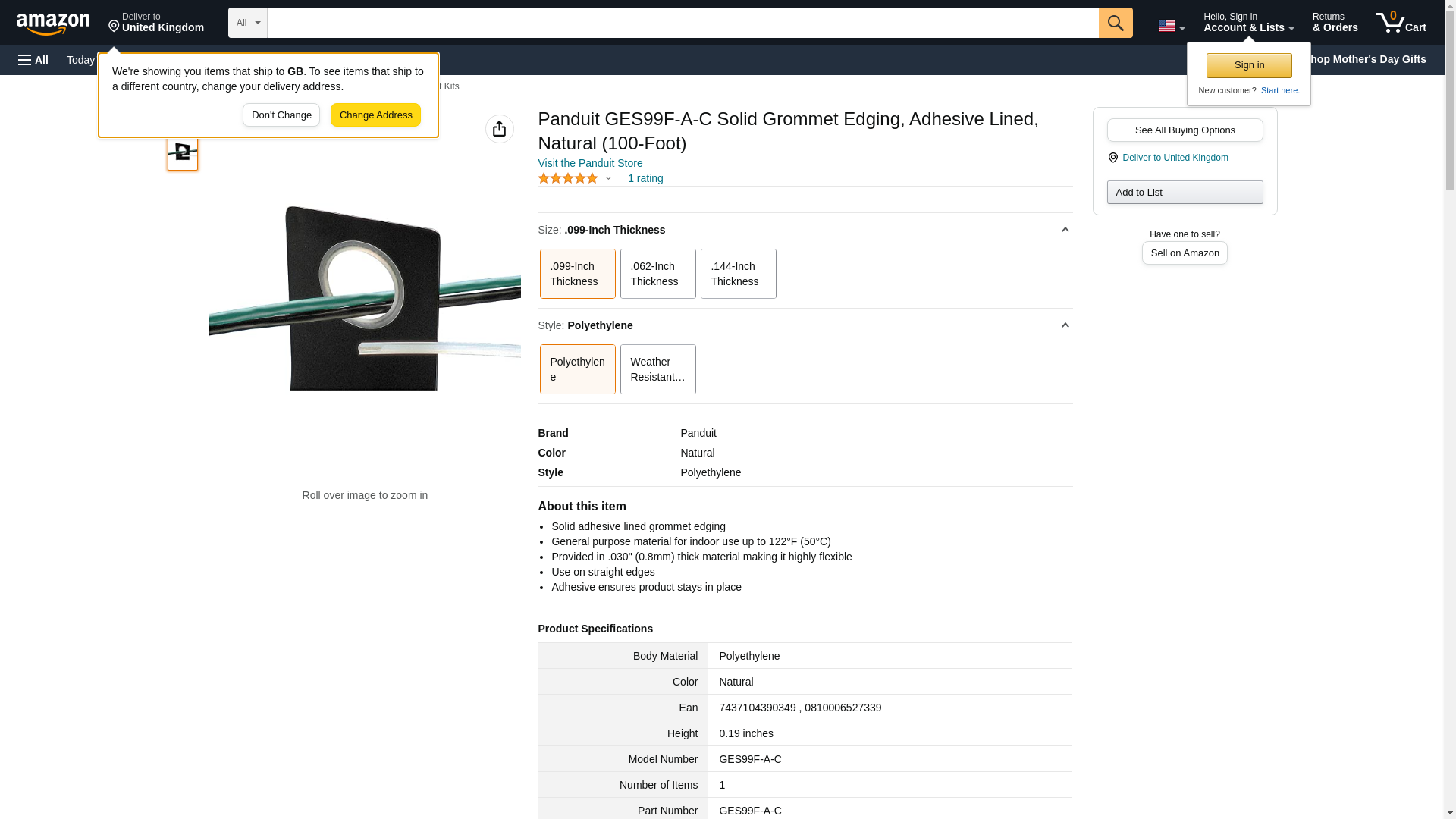 | Feature | Price For: Each Item: Electrical Grommet Edging Length: 100 ft. Color: Natural Material: Polyethylene Grommet Style: Solid Max. Panel Thickness: 0.099" Min. Panel Thickness: 0.062" Country of Origin (subject to change): United States |