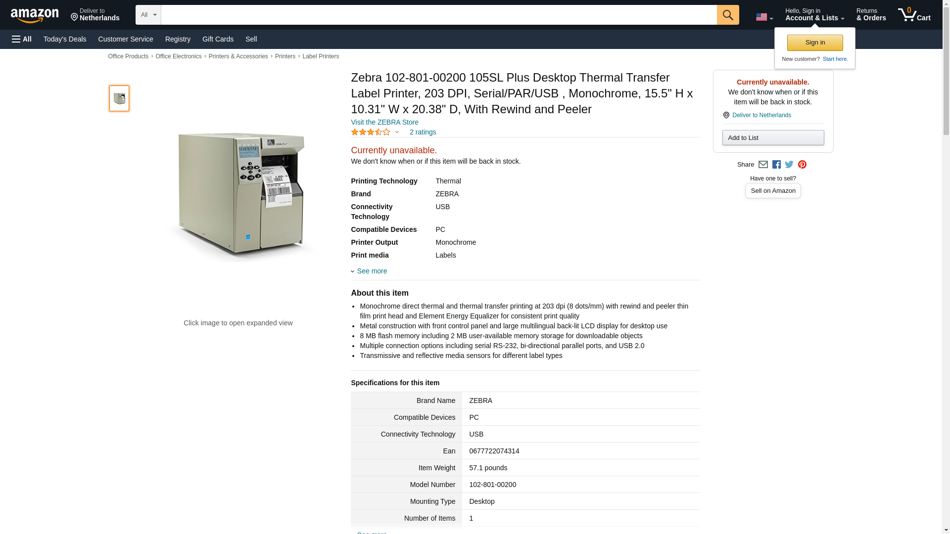 Zebra Technologies 102-801-00200 105SLPlus Direct Thermal-Thermal Transfer Barcode Printer 203 dpi SerialParallelUSBINT 10100 16MB SDRAM RewindPeel