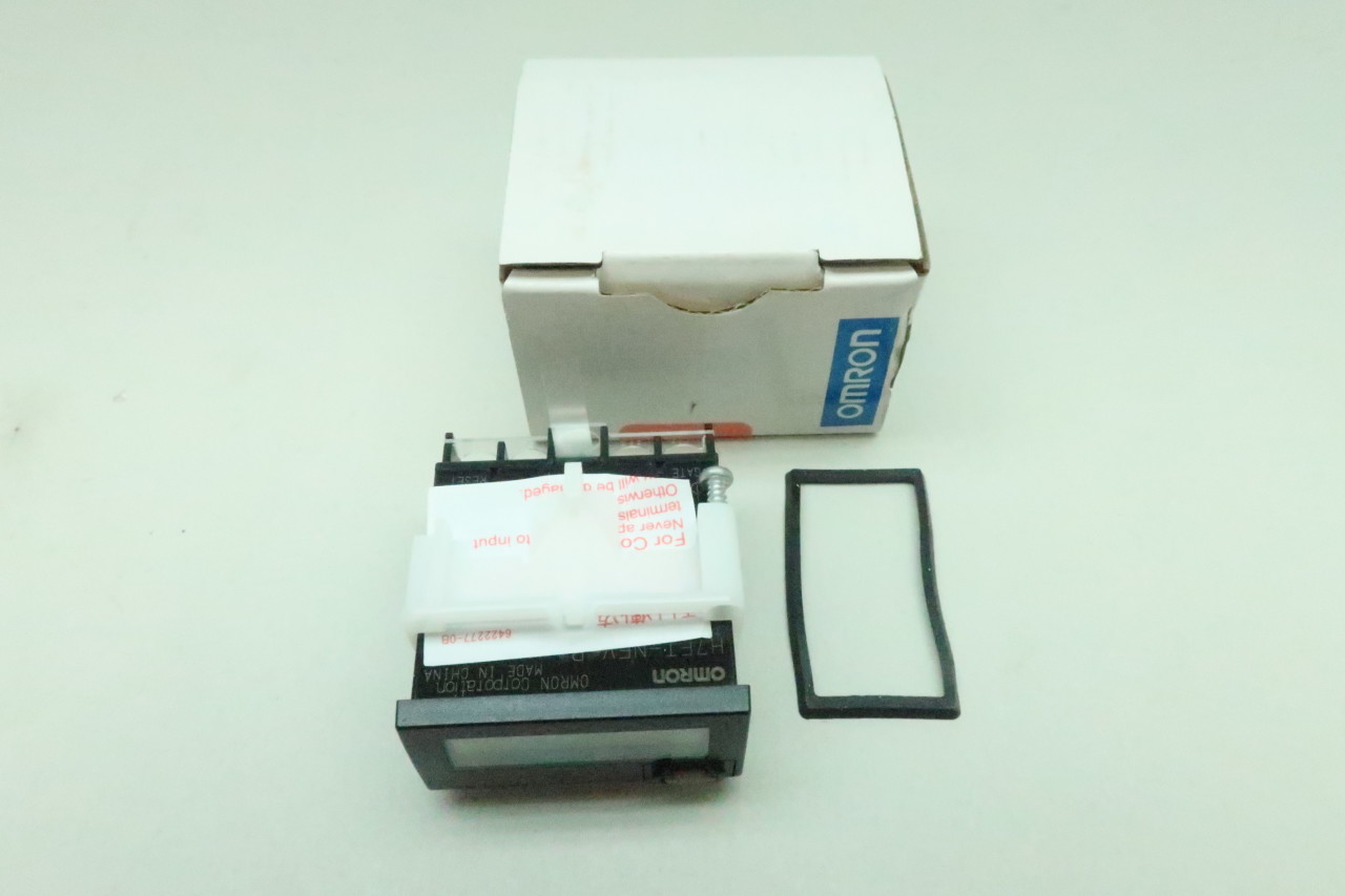 Omron H7ET Time totalizer shows counting with 7 digits 7-Segment LED. Brand Name|Omron#MFR Part Number|H7ETNFVB#UPC|47648283854#UNSPSC|41111902#Item|Time Totalizer#Number of Digits|7#Display Type|7-Segment LED#Input Rating|24 - 240 VAC/VDC#Reset Type|External, Manual Reset#Temperature Rating|-10 to 55 deg C#Mounting Type|Panel#Color|Black#Dimensions|45 mm Length x 22.2 mm Width#Standard/Approvals|UL 863, CSA C22.2