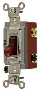 - The product type is Switches and Lighting Controls, Industrial Grade, Pilot Light Toggle Switches, General Purpose AC, Three Way, 20A 120/277V AC, Back and Side Wired, Red Toggle