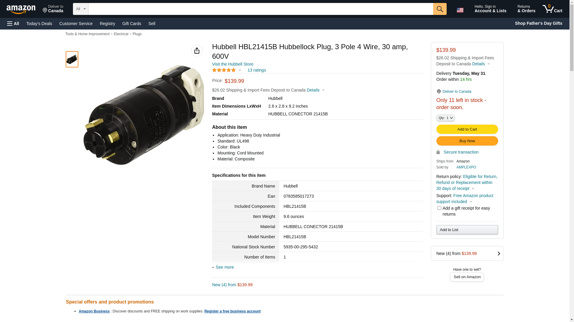 | HUB HBL21415B | 1 | 1 | 1 @ $226.84 | ||